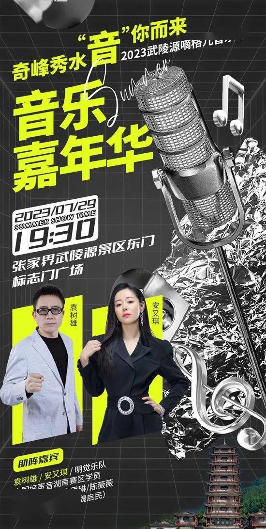 7月29日19:30—22:30, 2023張家界武陵源嘀格兒音樂季,誠心打造“奇峰秀水 • ‘音’你而來”音樂嘉年華活動。