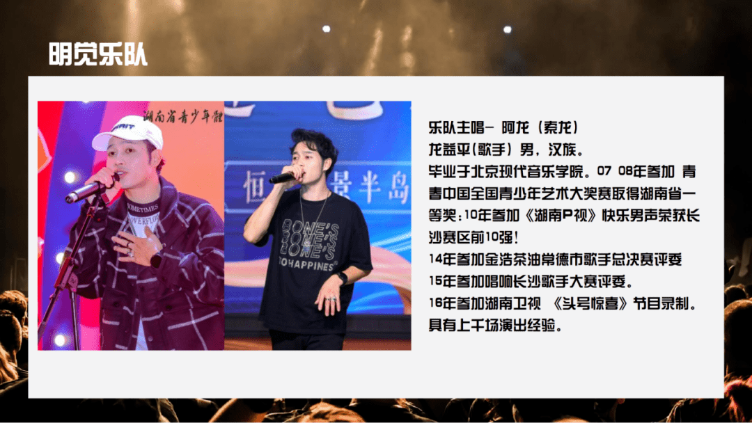 具有上千場演出經(jīng)驗的明覺樂隊聯袂出演,主唱秦龍、龍益平帶您嗨翻這(zhè)個夏天。